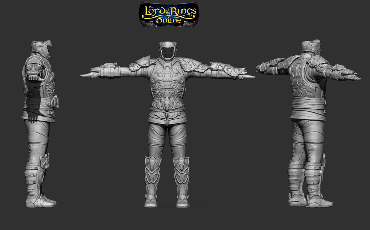 “I wanted to preserve the gold and green sensibility of the original Rohan sets while making them mobile. I then used that as a foundation for a more generic human starter set that was based on modern boxing gear breakdowns. After concept approval I brought the design into Zbrush to flesh it out more.” Melnick states.