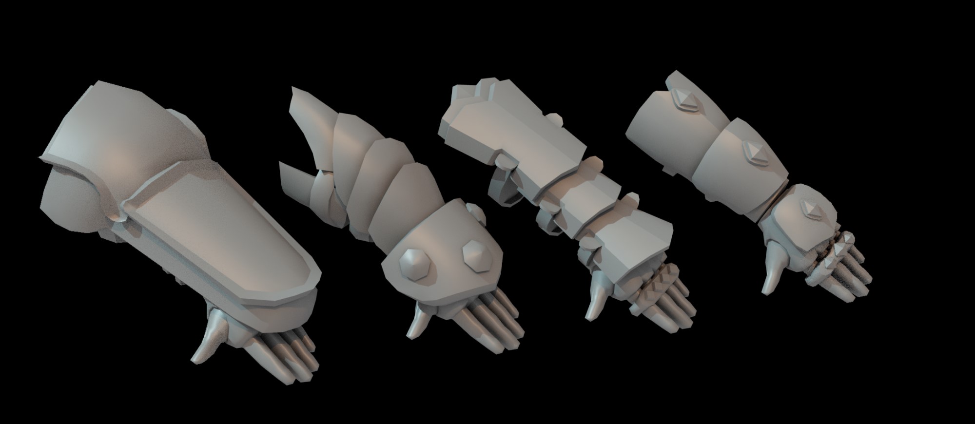 “We wanted one arm to act like a lighter punching arm, while the other arm would have a heavier should pad set with a heavier bracer to support blocking.” - Jen Melnick, 3D Artist
