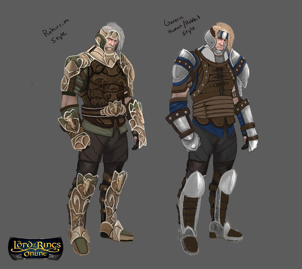 3D Artist Jen Melnick says she looked inside of the game world for inspiration when it came to hand to hand combat. “Brawler as a class is partially inspired by Helm Hammerhand, a Rohirric fighter known for his prowess in hand-to-hand combat. We already have a tapestry inside of the game featuring his likeness, and I wanted to pull from that thematically. I took the armour in the tapestry and went into our concept art archives to see what we did for Riders of Rohan. I wanted to tie the Rohirric Brawler armour set directly back to those other Rohirric themed armour sets, so I did what is called a 'paint over' on one of Wes Burt's original Rohan concepts.”