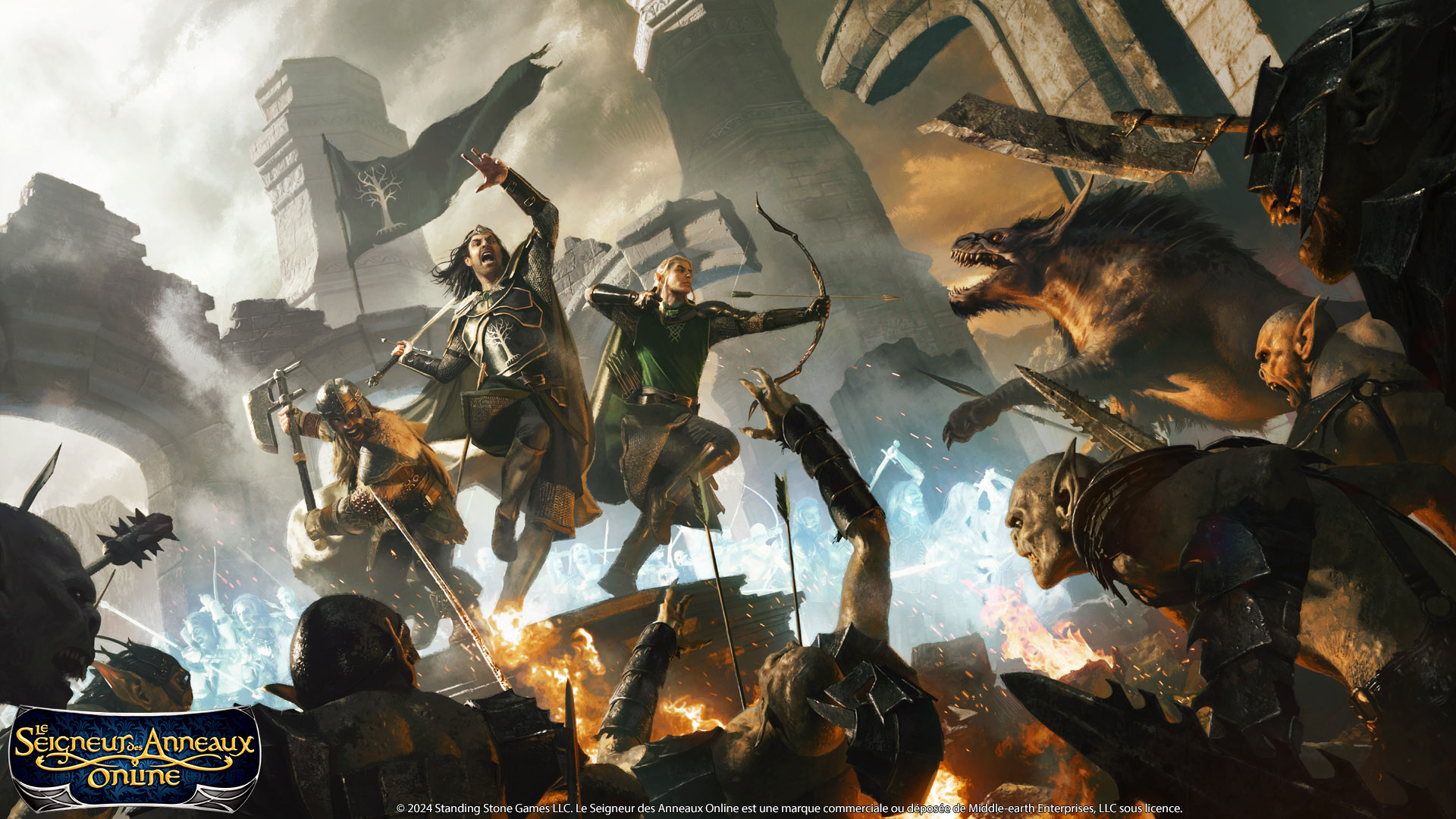 Bonjour, et bonnes fêtes de la part de l'équipe du Seigneur des Anneaux Online. Cette année a été pleine de rebondissements. Nous avons sorti le groupe d'instances des Corsaires d'Umbar et le raid de Mâkhda Khorbo, fêté les 17 ans de la sortie du jeu, ouvert les catacombes d'Umbar, introduit un nouveau loisir (l'ornithologie) et un quatrième emplacement de profession, ajouté la nouvelle instance « Dragon », modernisé l'apparence des Elfes, et sorti la dernière extension : L'héritage de Morgoth. De plus, nous avons ouvert les premiers serveurs 64 bits avec les serveurs légendaires de Mordor et d'Angmar, qui suivent les règles spéciales : Le voile des Neuf. Nous pouvons dire que 2024 a été une année bien remplie !