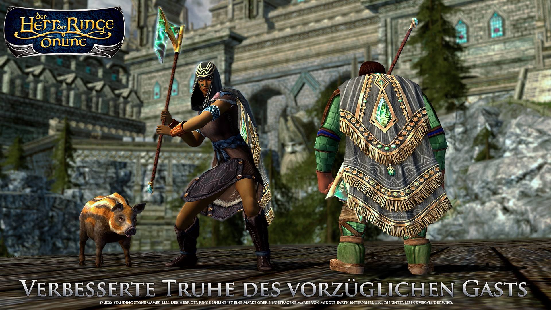 - Die Truhen des vorzüglichen Gasts können nur im HdRO-Shop erworben werden, wenn Ihr mit einem Charakter in der Spielwelt angemeldet seid. Die Truhen können nicht über den Charakterauswahl-Bildschirm gekauft werden.